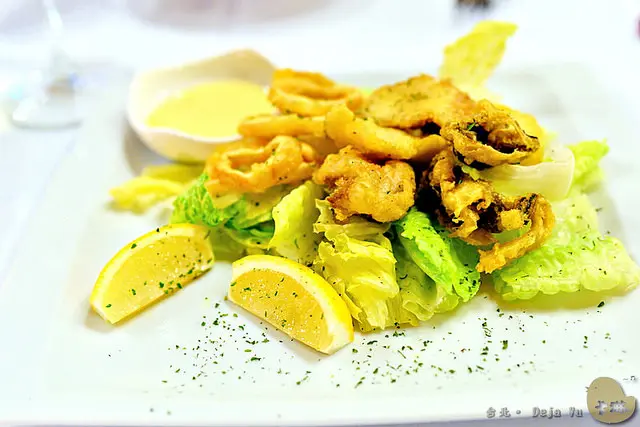 另一道開胃菜則選了「義式炸海鮮」,使用的海鮮料有透抽及鯛魚肉片,對炸衣沒什麼特別感覺,海鮮感覺新鮮度不錯不會腥,只是若再切厚一點炸口感會更好。