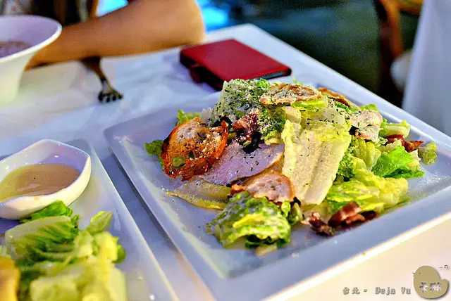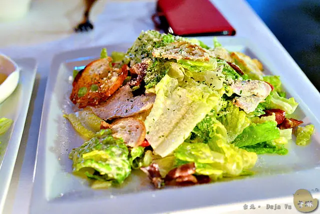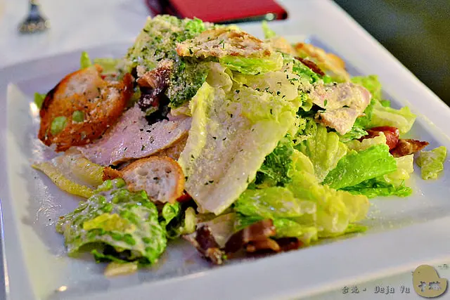 「雞肉凱撒沙拉」的雞肉不會太乾、太柴,醬汁調得夠濃稠,能夠均勻沾附在生菜上而不回清易流掉。