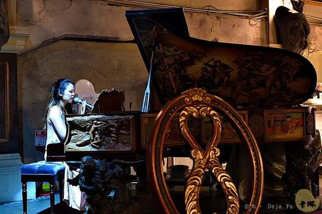 後來燈突然就暗下來了,原本已經很昏暗的空間,突然間變得更昏暗,原來是有鋼琴演奏+演唱表演!!!