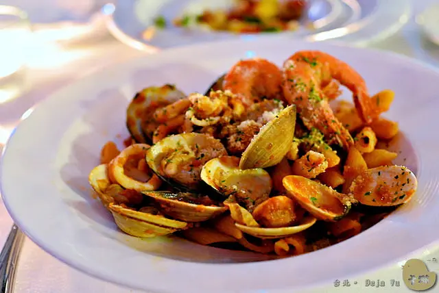這道的番茄味相當濃烈,海鮮的使用比例也夠,筆管麵的麵條煮得剛剛好,軟中帶點硬~