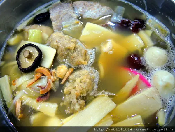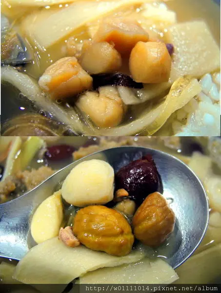 裡面還有栗子、炸鳥蛋、紅棗、筍片、魷魚、魚皮等~~