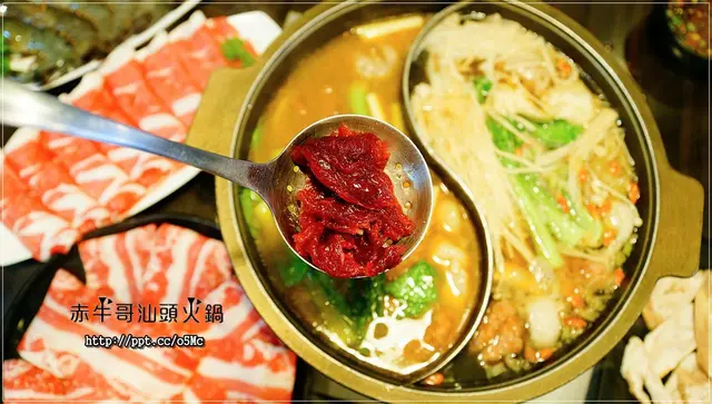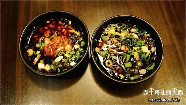右邊是冬菜青湯頭/左邊扁魚沙茶湯頭