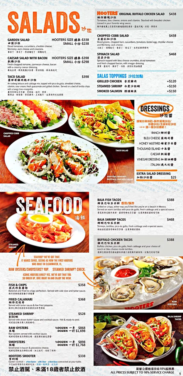 信義店將HOOTERS原創精神「健康、歡樂、美食」維護得最完整,包含HOOTERS Girls親切的服務、乾淨明亮的用餐環境以及精彩的呼拉圈和啦啦隊舞更是獨步全球,可以稱得上是一間”娛樂餐廳”。