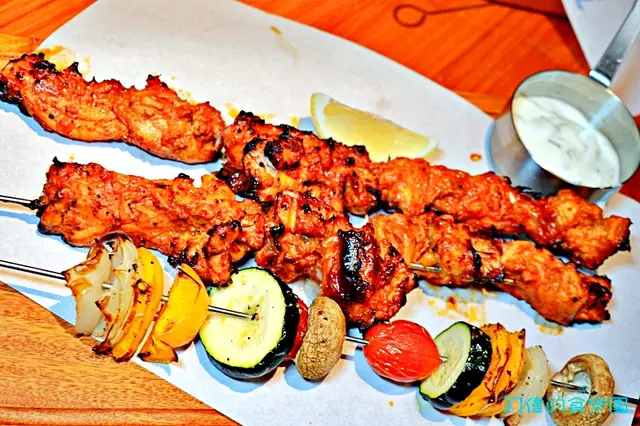 這是很有名的印度料理,其實”坦都”的意思是指那個烤爐,將雞腿肉插在鐵棍上,塗抹上用許多香料調成的醬之後,吊掛於烤爐中烤,最後出爐就能吃到外香內嫩的烤雞腿肉串,超讚的!