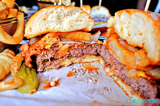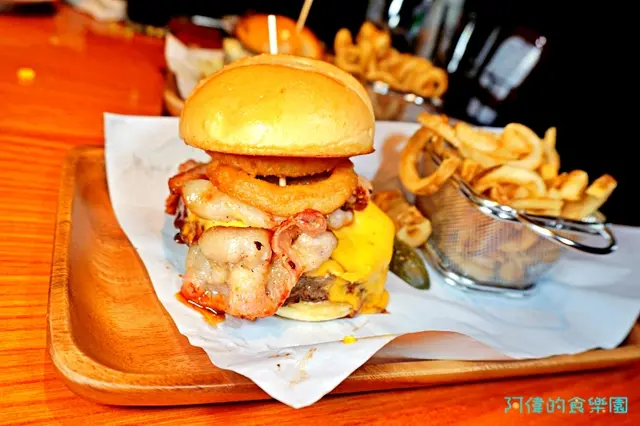 這個漢堡肉蠻厚的也有肉汁,裡面有楊蔥圈與培根,吃來口感有脆也有油脂,可說很豐富又滿足。