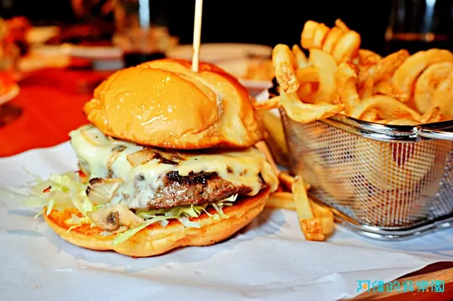 也是用了6盎司的牛肉漢堡,以及瑞士起司、炒蘑菇、生菜等。