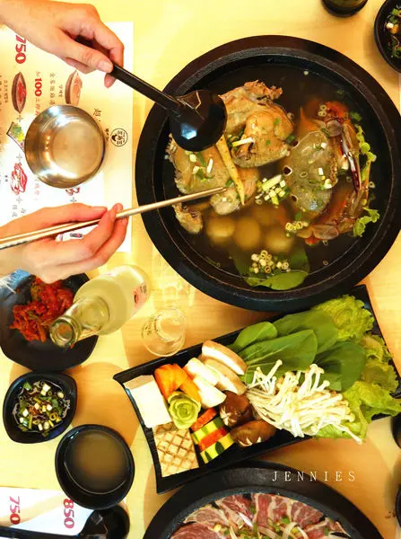 這鍋除了三點蟹以外更厲害的是這鍋的湯頭是嚴選了數十種新鮮食材與中藥材去熬製的湯底,所有的精華都濃縮在高湯裡,金蔘燉雞連人蔘都是韓國老板娘從韓國進口,運用了祖傳秘方古法慢火煨燉熬成,滴滴鮮美。