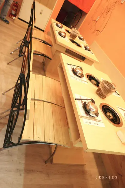 三角三的烤肉店及火鍋店都不大,走精緻小巧路線,重點還是在他們家的料理特色,前幾天去吃的烤肉用的大鐵盤就是利用這個大鐵鍋蓋的設計原理,在古時的韓國他們都用這樣的器具來儲存食物跟烹飪,鐵鍋被燒的炙熱,下面滾煮食材,上面的鍋蓋就拿來燒烤,店內這個大鐵鍋蓋一般女生應該拿不起來,非常有重量,平常這個在店內當展示品,但它是可以實際拿來操作料理食物的。