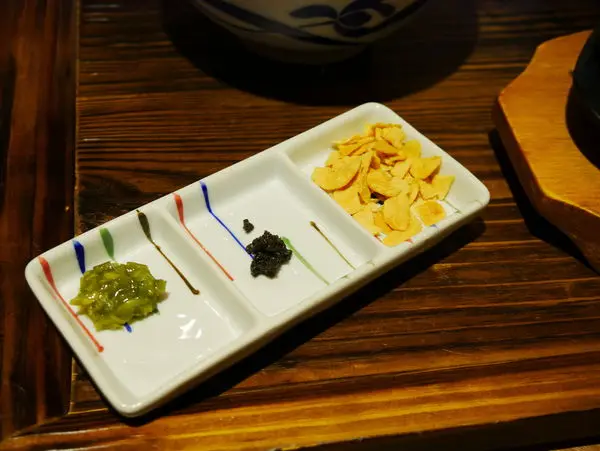 其中一種吃法是原味,可以配魚卵和三種配料吃