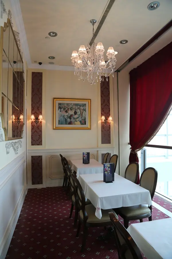 歐式的花紋壁紙、舒適大方的座椅、優雅華麗的水晶吊燈,營造出一種華麗但卻溫馨的氛圍
