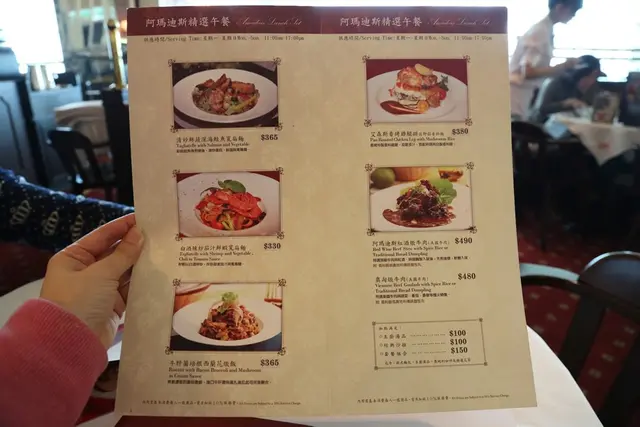 週一至週日1100-1700供應精選午餐,單點價位落在$330~$480之間,需另加$100~$150才能升級套餐