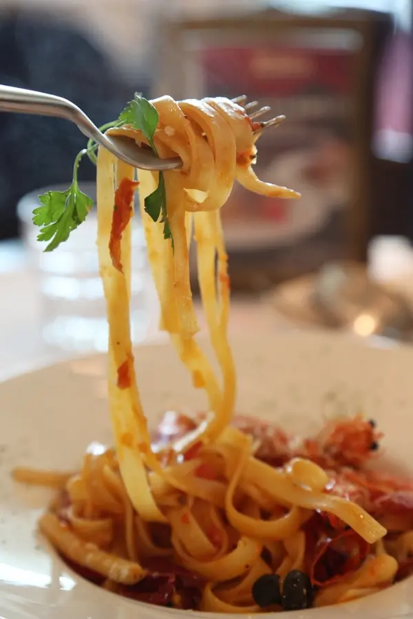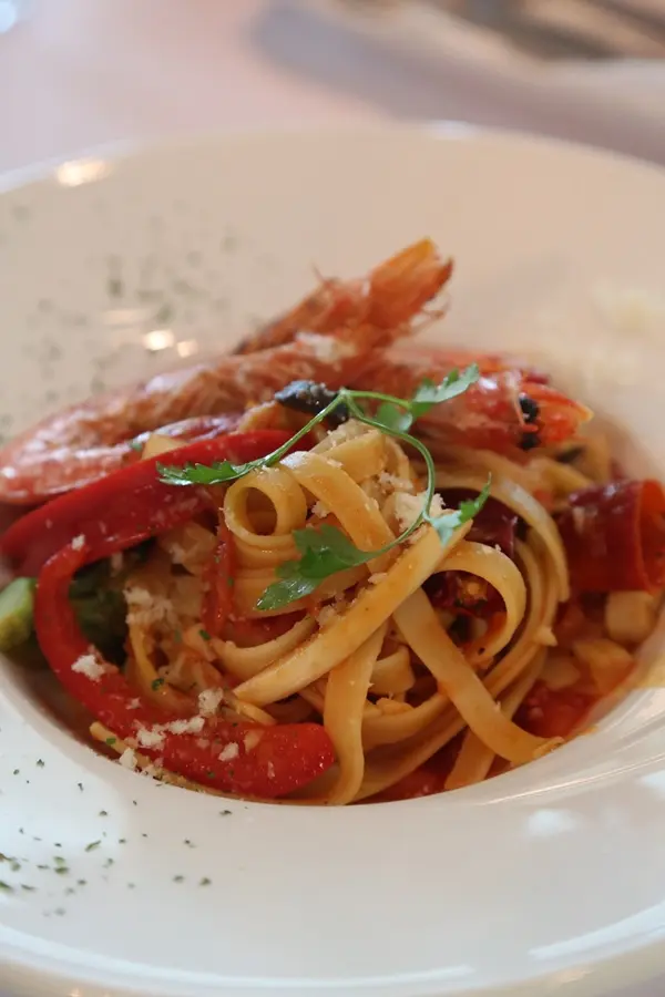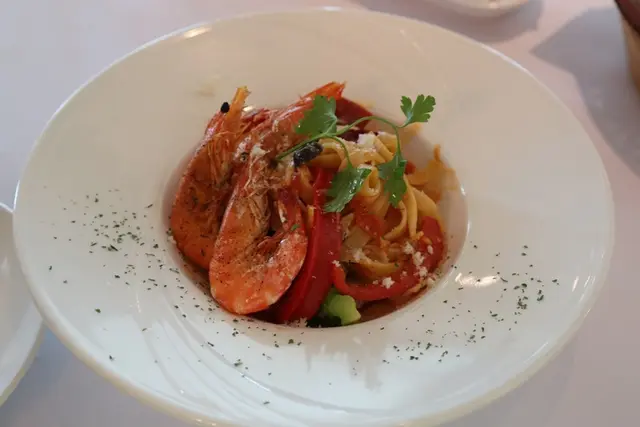 白酒辣炒茄汁鮮蝦寬扁麵(單點$330)