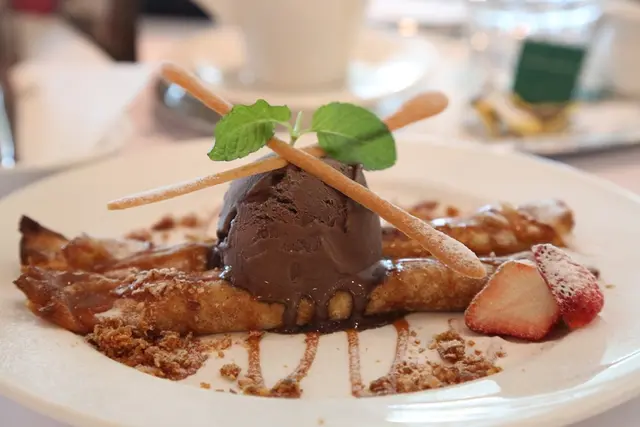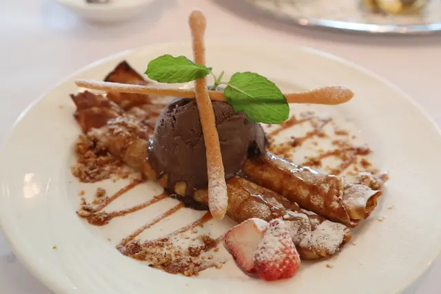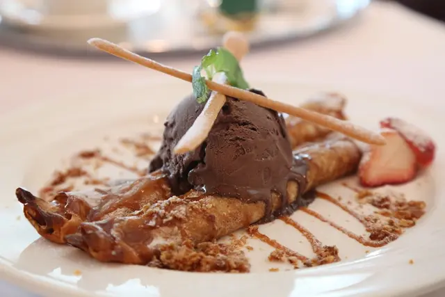 香烤手工薄餅捲滿堅果餡料,搭配微融的巧克力冰淇淋與微熱的薄餅,口感豐富滋味甜蜜好~喜~歡