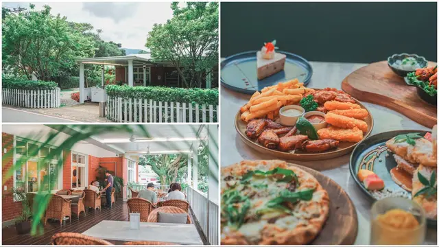 陽明山餐廳推薦,來陽明山走走大家一定不會錯過草山小鎮美軍宿舍群這邊的餐廳,保留了鄉村木屋原始風貌,搭配美式風格的招牌點綴,一秒就讓你置身國外街頭,這一區的元老餐廳-The Cafe By 想陽明山在2024年初重生,搬遷到斜對面,由兩棟獨立的紅磚瓦屋串連而成,整個空間更大更舒適,諾大的庭院裡種植了櫻花跟落羽松,一年四季都有不同風貌,主打大份量義式餐點,不管是三五好友或是家庭聚餐都很適合,享用美食還能享受被綠意包圍環境,這裡真的太chill了