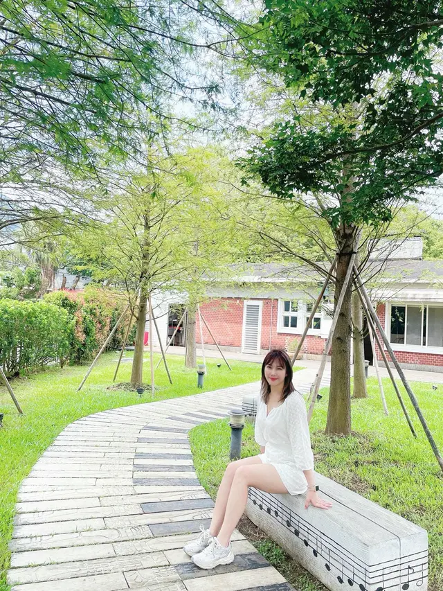 想陽明山是兩棟建築打造而成,前種比較偏散客用餐,後棟適合包場,中間這條綠油油的小徑兩旁種滿落羽松,步道打造成鋼琴按鍵,走在這裡感覺會跟著跳躍呢