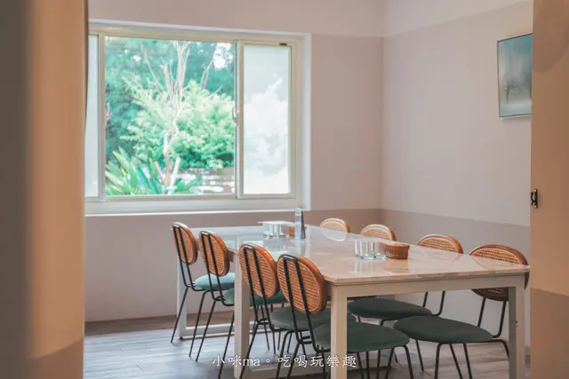 新址的戶外座位區更寬敞了,藤編椅子增添度假氛圍,其實天氣涼一點時坐戶外是最棒的,很多客人都會帶著毛小孩來陽明山走走,想陽明山的規定是小犬可陪伴入店,但中大型寵物是不能的,小型寵物入店但不落地,必須將牠放置於推車或寵物籃內,遵守室內寵物不能落地、不放任吵鬧、不在店內整理寵物毛髮、便溺的話需要主動清理,中大型寵物則需在戶外區並有牽繩,戶外也設有用餐區,規定嚴格一點就是希望大家來這裡能夠輕鬆自在的享受用餐的時光