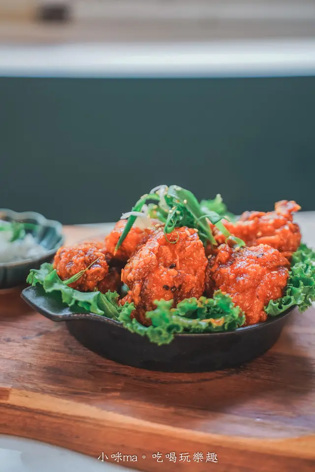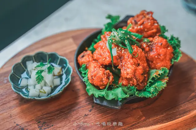 我在美國鄉村小鎮裡吃著韓式炸雞,炸到外酥內嫩的炸雞裹上特製韓式洋釀醬,甜甜的口味非常涮嘴,雞肉也鎖住肉汁,真的不輸韓式餐廳裡的炸雞,一旁還有醃蘿蔔可以解膩呢