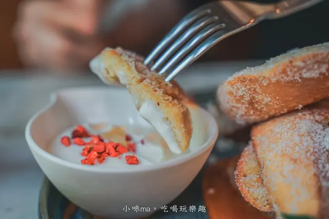 如果覺得太甜的話也可以沾著一旁的優格醬,甜甜鬆軟的麵包跟酸酸的醬香中和出的口感完全不膩,但這一道吃完真的很飽,建議不要因為好吃就一次嗑光光啦,哈