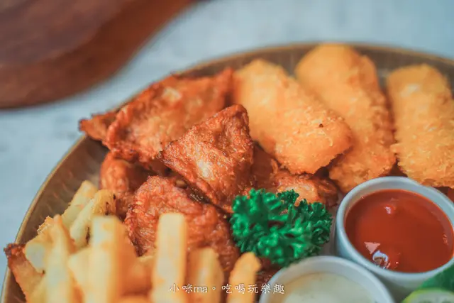 第一次看美式拼盤裡面還有中式的牛蒡天婦羅,重點是炸的很好吃,跟基隆廟口的一樣好吃,哈哈哈