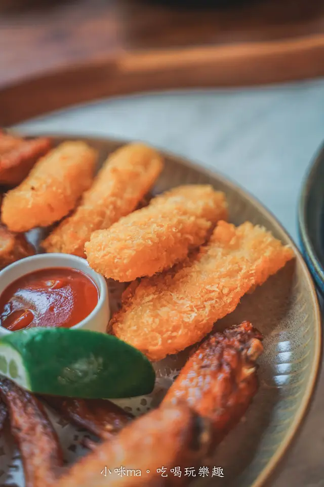 多人聚餐的話就是要把炸物拼盤點起來,裡面有薯條、紐澳良烤雞翅、鱈魚條、牛蒡天婦羅,這樣一份3~4人一起share差不多,烤雞翅宇宙無敵好吃,那個雞皮烤得恰到好處,可以吃到雞油香氣,雞肉也好嫩口