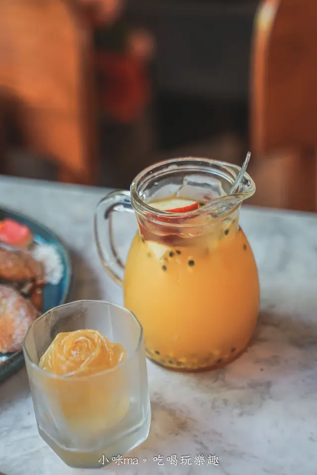 想陽明山不只餐點分量多,飲料也是走浮誇路線,簡單的水果茶還附上綠茶玫瑰花冰磚,而不像一般店家是放冰塊,因為加了冰塊融化後會影響濃淡口感,這個綠茶玫瑰花冰磚讓你喝的每一口水果茶都能感受到茶香回甘,而且很大一壺,超划算的