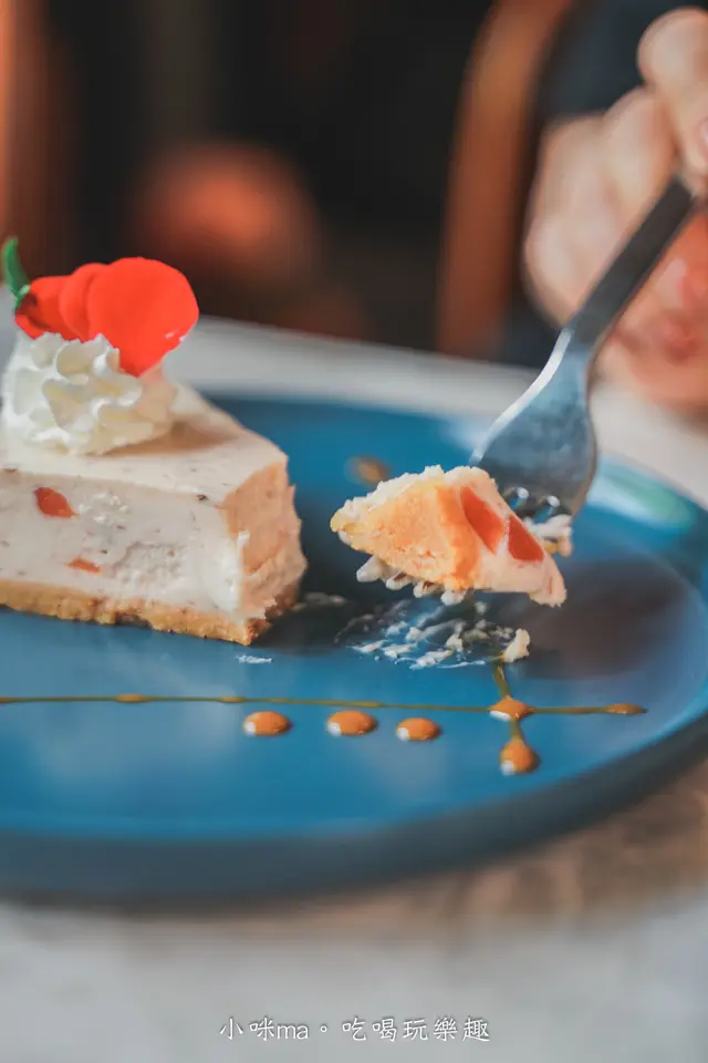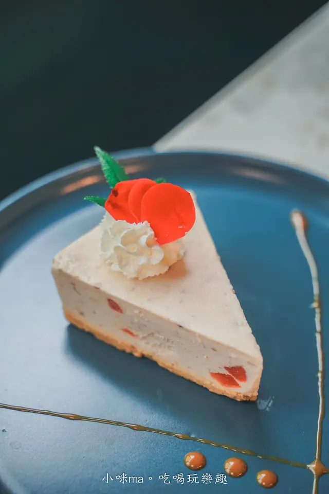 玫瑰重乳酪蛋糕也很夢幻,用了玫瑰花瓣點綴,淡淡的玫瑰香氣非常誘人,口感也很滑順