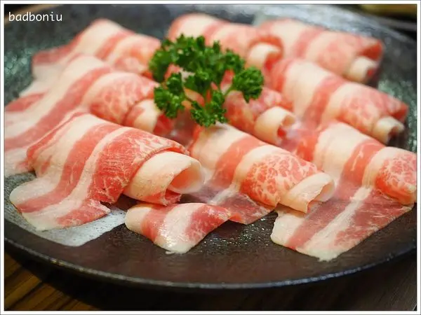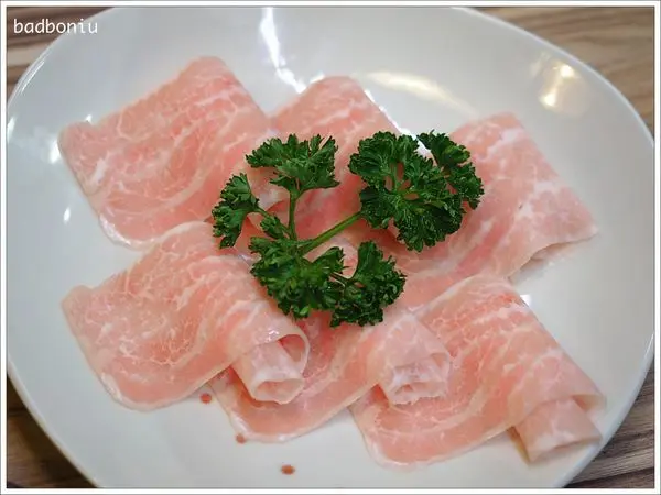 在在試營運期間每桌都會送一份肉盤,這一份就是送的小份雪花豬。看著粉紅色的肉片及上面分布的白色油花花紋,好美麗啊~