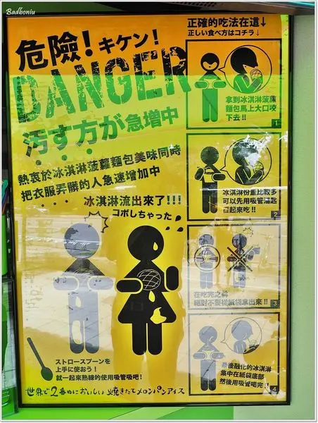 因為冰淇淋很快就融化了,所以有很多滴到衣服上的慘案發生(像波妞媽就是><),所以旁邊的警語一定要看清楚、看完,否則你也就會是苦主之一了!