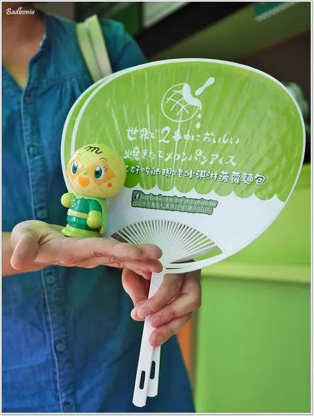既然是冰淇淋菠蘿麵包,店內當然有麵包超人裡的菠蘿麵包超人囉!天氣熱,店家也有準備扇子給排隊的顧客搧搧風,有需要可以跟店家索取。