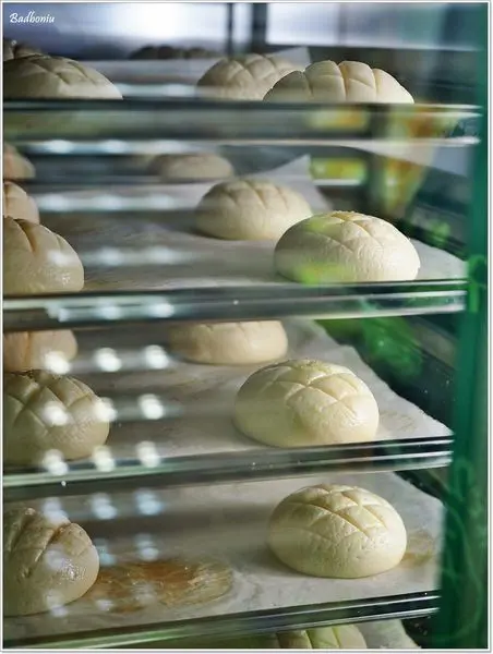 可以透過機器的透明玻璃看到菠蘿麵包正在睡一場好覺,等一下就會膨膨的了~