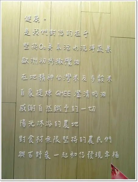 1樓的牆上,寫著白色吉野家想傳達的理念與對食材的堅持