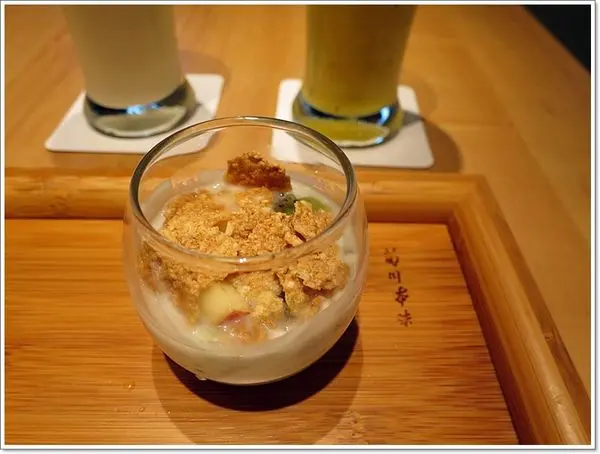 優格鮮果,裡面有水果,優格是原味的,所以只有一點點微酸的味道。