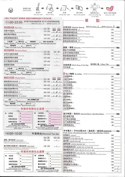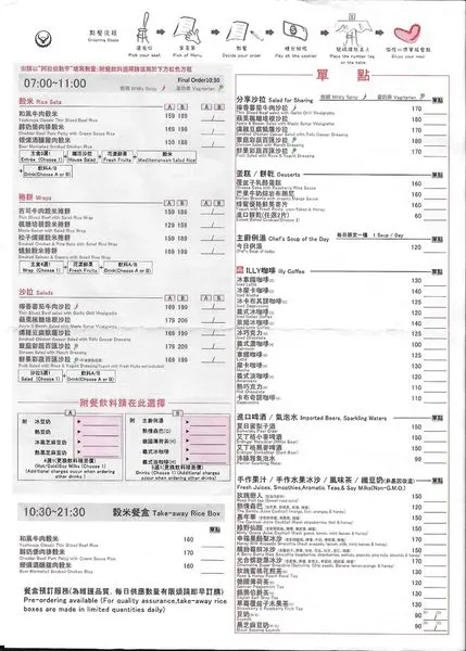 Menu如下,同一個主食,在每個時段搭配的內容與價格有點不同,應該是為了不同時段而特別區分出來!