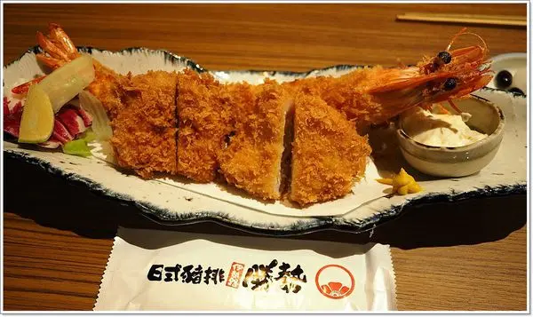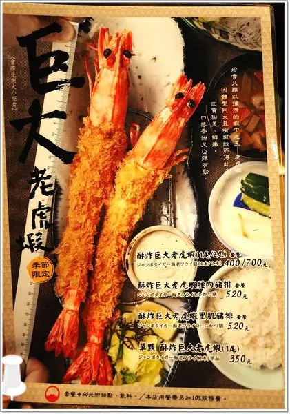 「酥炸巨大老虎蝦里肌豬排套餐」$520,單價不低,但看到這尾大蝦就嗨了。