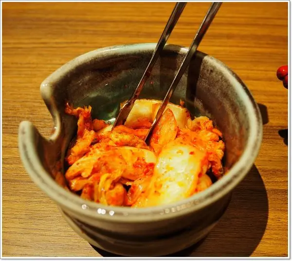 每桌有這個辣泡菜! 這個辣泡菜很好吃,不會太辣,醃的恰恰好。看來日式餐廳的韓式泡菜大部份都很好吃,品質比韓式餐廳還穩定咧! 韓式餐廳還比較常遇到泡菜不好吃的。