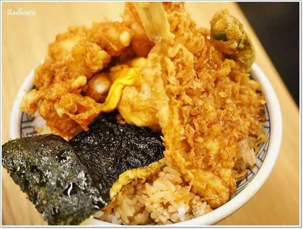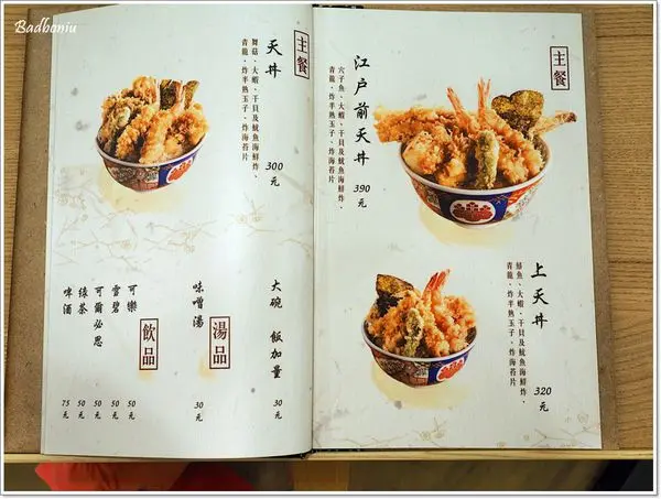 日本本店只有江戶前天丼一種口味,台灣卻有三種ㄟ~價位上還蠻不便宜的,換算成日幣後感覺比日本還貴上許多。但是據說材料都是從日本空運來台,想不貴也難。(後來發現米是台灣米)