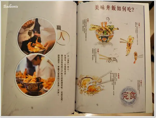 菜單及桌上的牌子都以說明食用的方法,讓天丼吃起來更美味。不過別桌入座時服務生都有做說明,我們就沒有。 可能我們的臉上寫著 我吃過東京的~