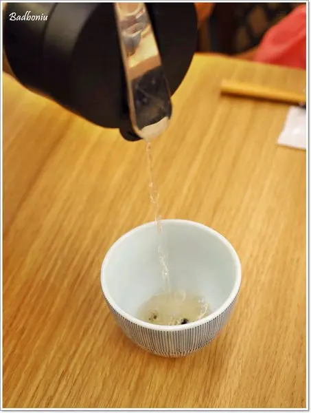 每一桌的杯子裡都有黑豆,是要搭配桌上的茶使用。