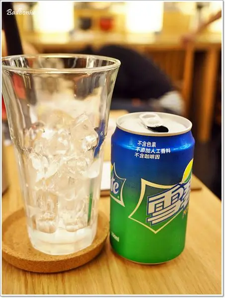 汽水,是易開罐,而且杯子剛好是一罐的容量,算得剛剛好。