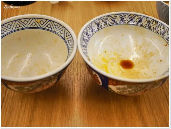 完食,看碗底,有發現有什麼玄機嗎?原來右邊那碗可是以穿矮子樂的碗唷(笑)~ 其實這也是大小碗的差別,從外觀來看是看不出來的,吃完後才會發現碗不一樣深