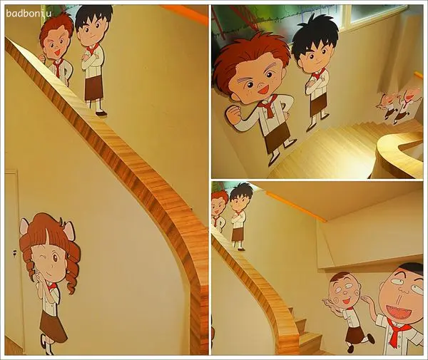 一樓的牆面有漫畫裡每個人物的肖像喔,不過我們只認得幾個比較常登場的人物
