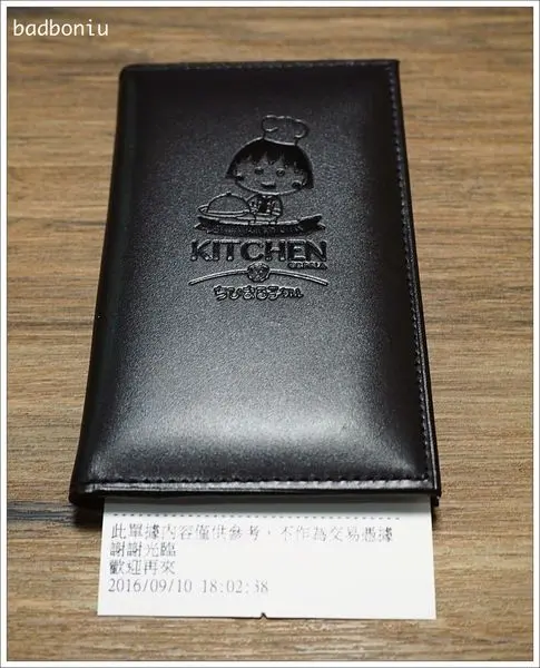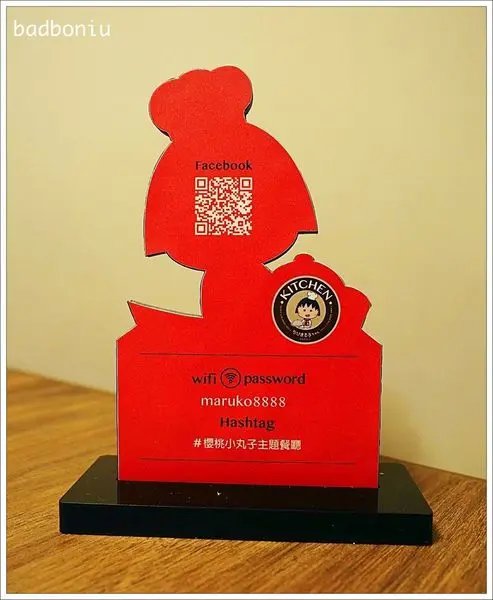 上面看到正面是戴廚師帽的小丸子,背面是餐廳的資訊,正要開心有wifi的時候,連上去發現密碼不對,才知道原來wifi 沒有開放啦! 所以我們即將開始等餐的人生。