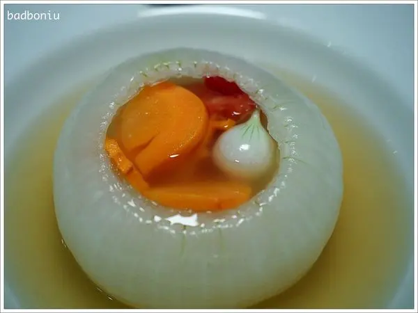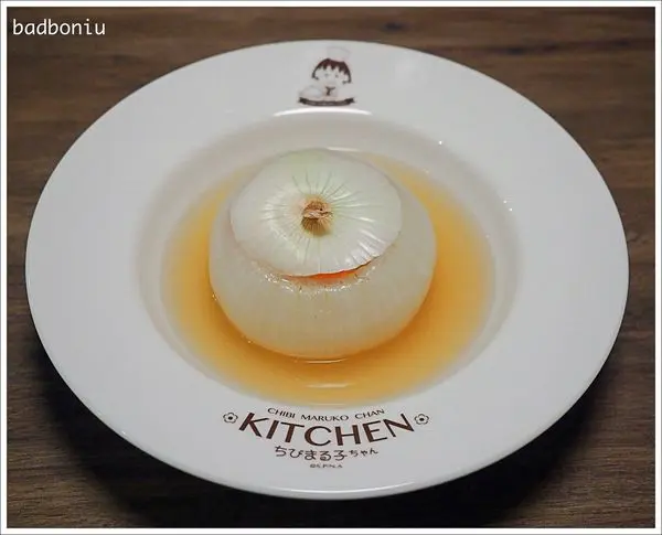 「永澤の洋蔥湯」,我們還特地把洋蔥的梗拉起來一點,比較像永澤啦! 這一整顆洋蔥吃下去就差不多飽了,前提是你要很愛吃洋蔥