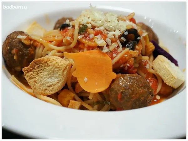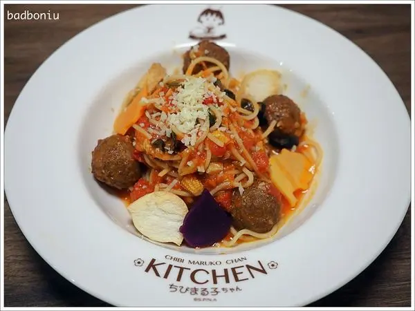 「小丸子牛肉蕃茄義大利麵」,這項比較不愛,義大利麵吃起來粉粉的,有點像早餐店可口涼麵那樣子的口感,但又偏重口味,牛肉丸跟IKEA買的有點像XD