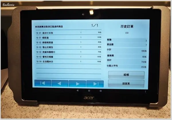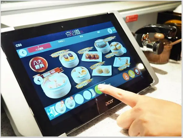 這裡最大的特色之一,就是點餐都是以平板點餐,很有科計技感。也許是因為剛開幕,所以感覺起來餐點樣式沒有很多,還沒點幾樣就已經覺得沒什麼菜好點的,頁面翻來翻去就是找不太到想吃的。