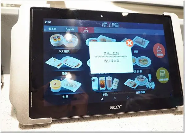 當餐點要送上來的時候,平板還會顯示「菜馬上就到」喔,蠻有趣的