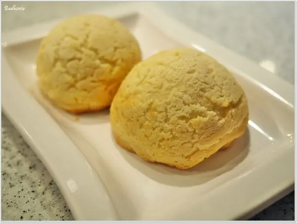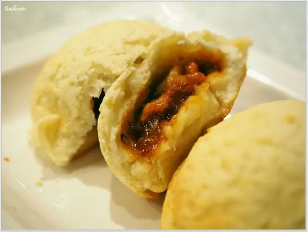 外面是熱呼呼、吃起來酥酥的菠蘿麵包皮,裡面的叉燒餡甜甜的,還不錯吃。