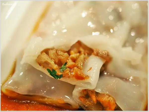 裡面也是甜甜的叉燒餡,腸粉皮還蠻Q的,醬油稍鹹一些些,但不會太死鹹。