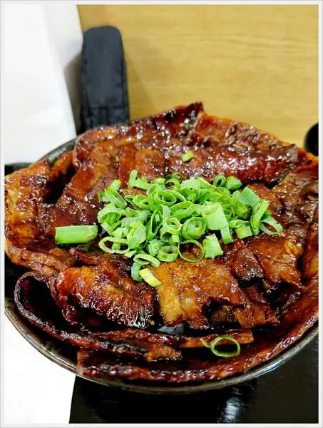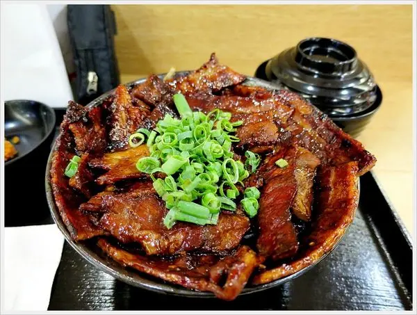這是最便宜的野郎燒豬丼,是使用黑糖、甘蔗製作的糖燻燒肉醬現場燒烤的,大份量爆滿出來的燒肉真的可以滿足想大口吃肉、無肉不歡的人!底下的白飯也吸附了烤肉的醬汁,非常下飯,一下子就把飯跟肉嗑光光~好好吃唷~