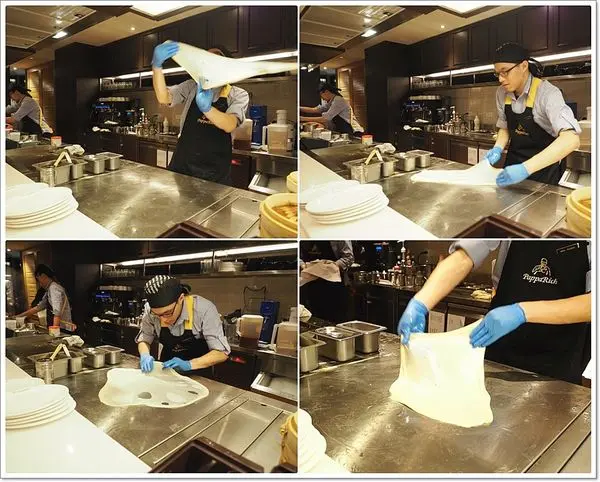 半開放式的廚房可以看到工作人員正在製作拋餅,看起來好想頗不錯吃的樣子。